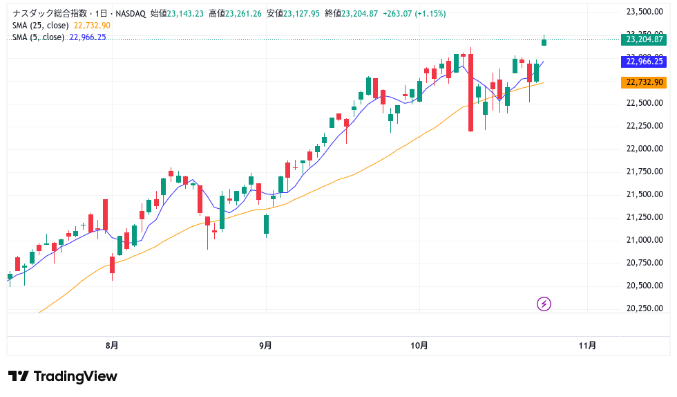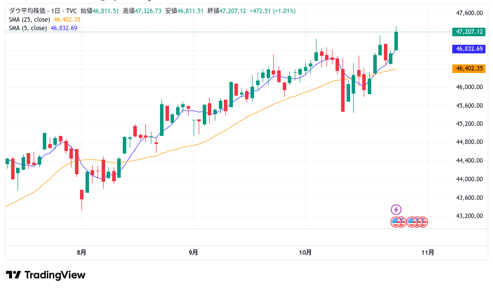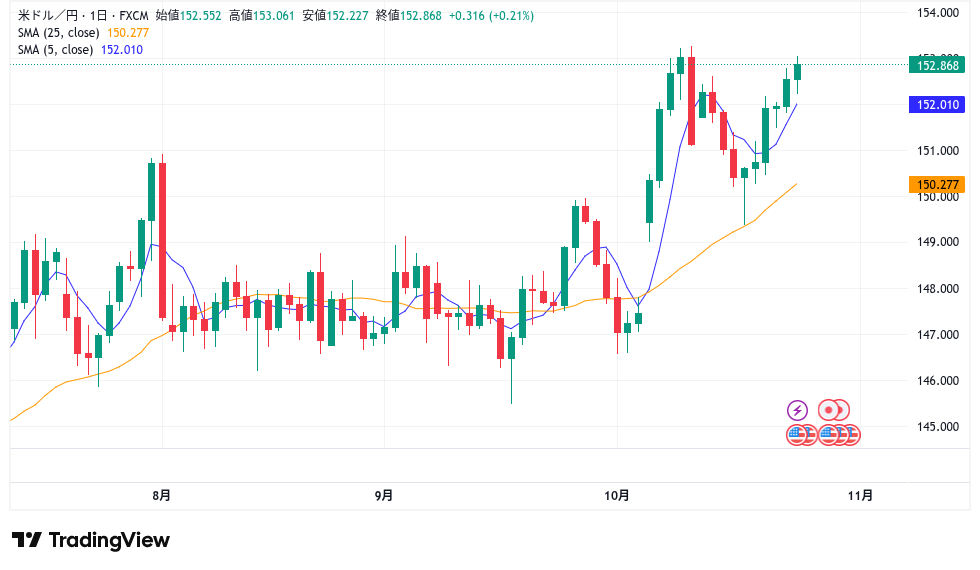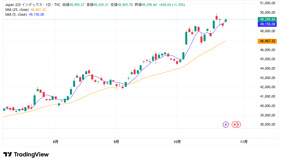 高市総理が誕生し、日経平均はやや高いボラで動きながらも、上昇傾向。