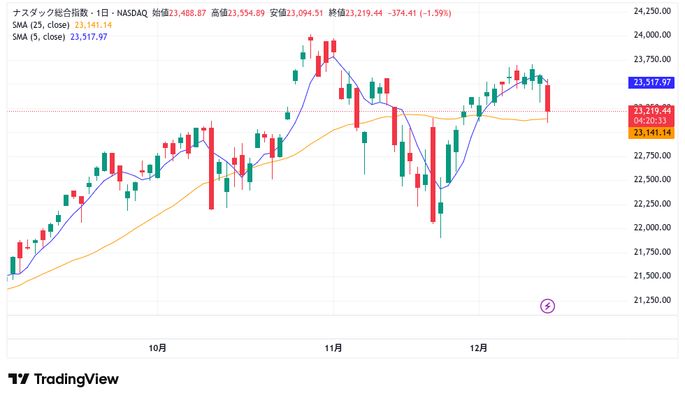 利下げ・国債の購入があったわりに、株価は勢いなく、特にナスダックは金曜日に下げている。